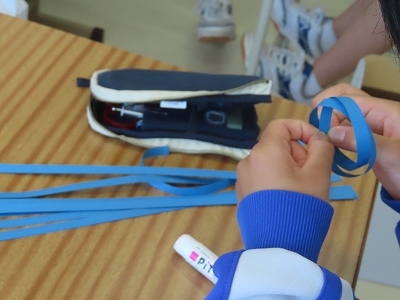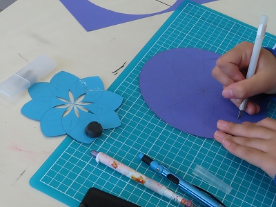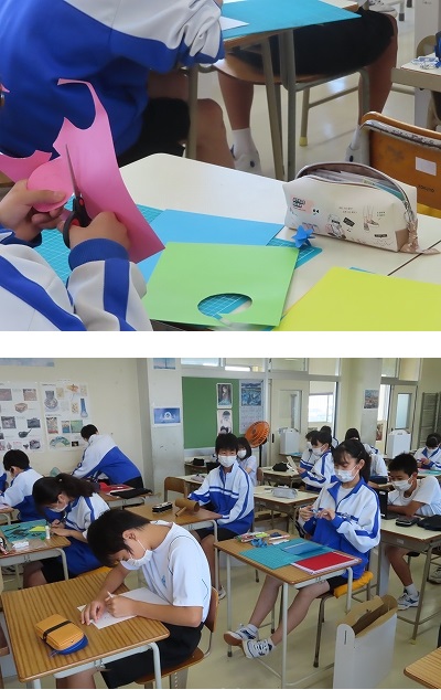モビール作りです。自分のデザインを忠実に表していこうとみんな真剣そして丁寧に制作しています。