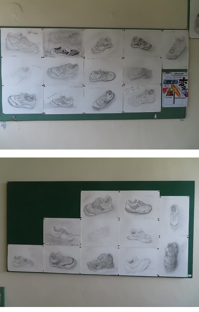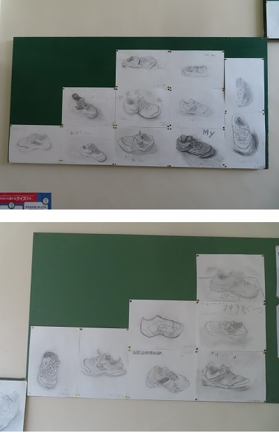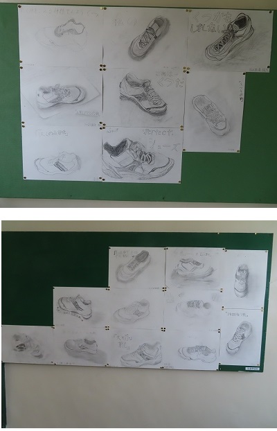 生徒が普段履いている靴のデッサンです。それぞれの特徴が描かれていますね。