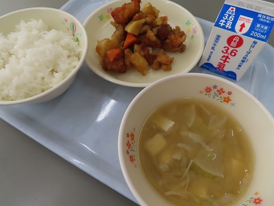 鶏肉の揚げ煮は味も良く、生徒には大好評です。美味しかったです。