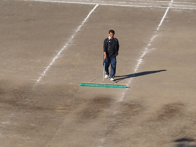 体育科の先生が4日(木)の潮会体育のためのグラウンドの準備を行っています。
