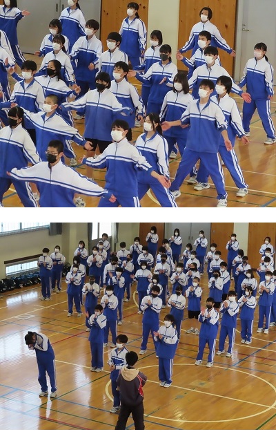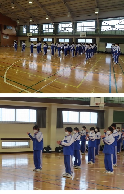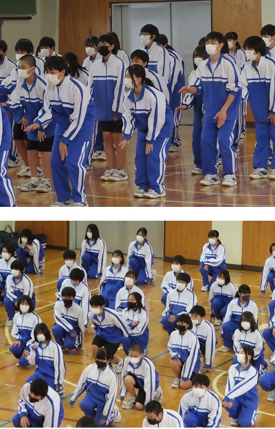 放課後、A・Bブロックに分かれてボディパーカッションの練習を行いました。だんだんそろってきています。迫力も出てきました。2年生の代表が中心となってがんばっています。
