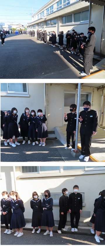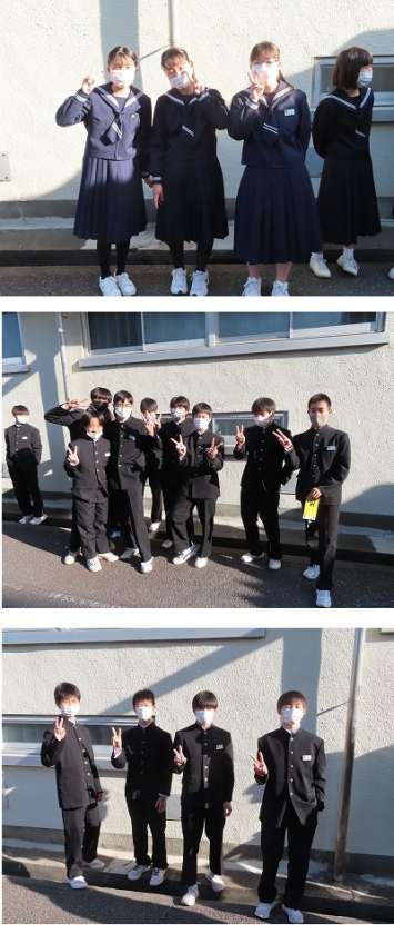 3年生は、公立高校の受検を終えてはじめての登校です。全力を出し切ったという感じて、みんないい表情で登校していました。