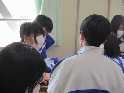 1A道徳:「オーストリアのマス川」。「なぜルールを守らなければいけないのか」について熱い議論が展開されました。「他人に迷惑をかけないため」「自分のため?」「生態系のため?」人の意見を聞いて新たな気づきが生まれます。