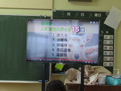 修学旅行に向けて、奈良で絶対にいっておきたいベスト15を確認しています。その中から1つ選び、クロームブック等で調べていきます。