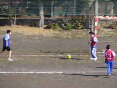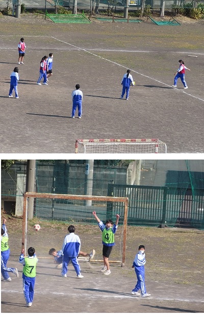 「サッカー」を行っています。ちょうどシュートが決まりました。