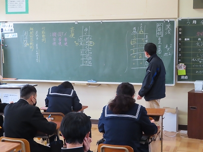 「文法」について学習しています。いろいろな形容詞を例にとって、共通することを見いだしています。そこから法則化していました。