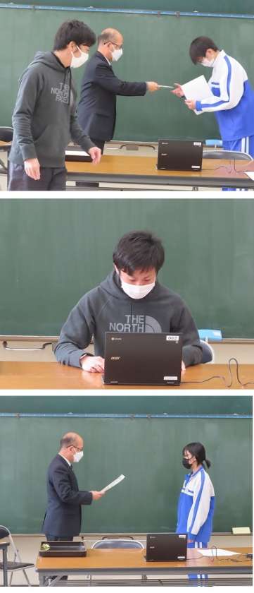 はじめに潮章認定式を実施しました。潮章に輝いた生徒は、誇らしげに章を受けてっていました。