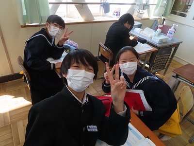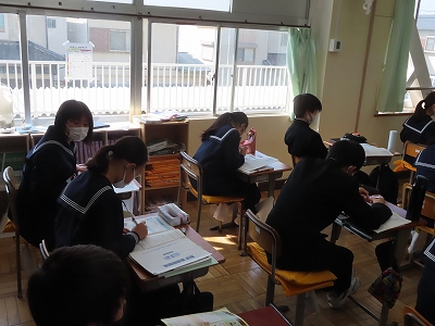 データの読み取りについての問題演習を行っています。わからないところはお互いに相談していました。