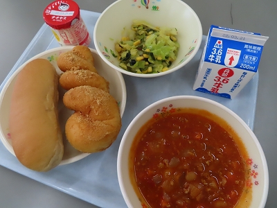 3年生は、義務教育最後の給食となりました。今までの感謝の気持ちをこめておいしく食べていました。ちなみに揚げパンは3年生からのリクエスト給食です。