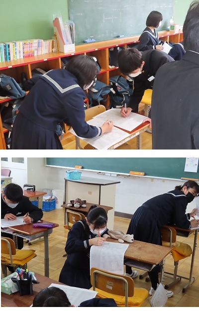 お互いにメッセージをかきあっています。9年間共に過ごしてきた仲間ともお別れが近づいています。思い出は語り尽くせないようです。