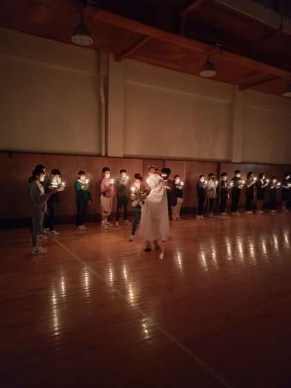 火の神様が退場します。火を灯し、一人ひとり思いを馳せています。