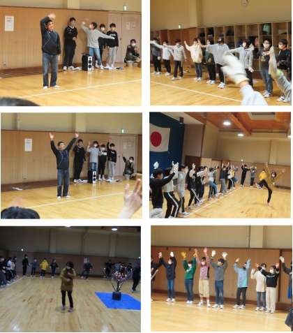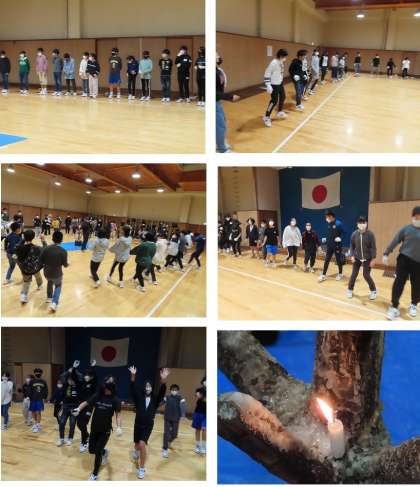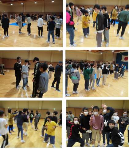 フォークダンスとレクのようすです。みんなで楽しんでいます。