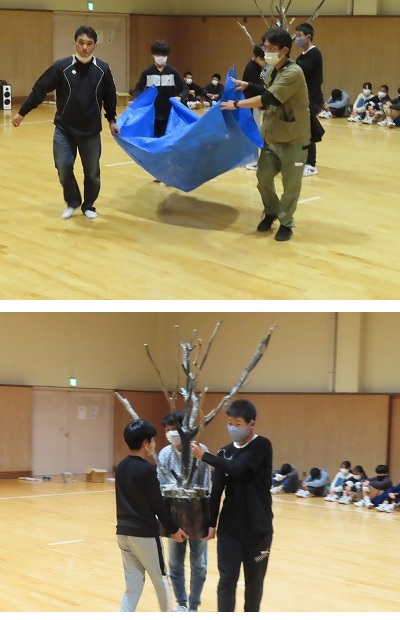 キャンドルファイヤーの後は、係の生徒がしっかりと片付けを行っています。