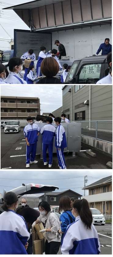 天気が心配されましたが、PTA古紙回収を実施することができました。生徒のみなさん、保護者の皆様、大変ありがとうございました。また、地域の皆様、古紙等を出していただきありがとうございます。写真は、山田車体工業駐車場の様子です。