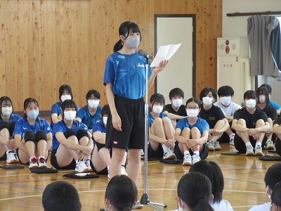 部長の決意表明 卓球部、吹奏楽部、総合部