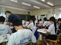 今日の授業は担任の先生の授業研修も兼ねていて、研修センターのアドバイザーの先生や本校の何人かの先生が授業を参観しました。生徒はいつも通り、熱心にグループでの話し合い活動に取り組んでいました。