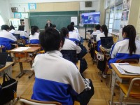 1年A組は国語です。物語文「トロッコ」(芥川龍之介作)の学習です。言葉にこだわり、文中の坂の勾配の様子も作者がこだわって表記していることをつかみ、イメージを広げる読みに取り組んでいました。