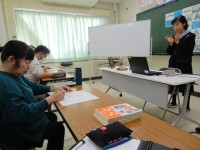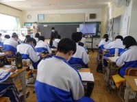 2年A組は国語です。百人一首大会に向けての学級リハーサルです。気合いが入っており、盛り上がっていました。