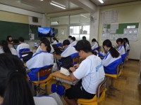 1年A組は保健体育の保健分野です。欲求やストレスへの対処についての単元で、今日は欲求ってどんなものがあるのか、各自が考えていることをもとに分類していました。