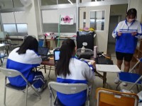 2年生の様子です。待っている間、互いに情報交換をしていました。最初に個人」、次に「3~4人組でのグループ」でオンラインで行っています。
