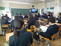 1年B組は道徳です。「さよなら、ホストファミリー」という教材で、日本の伝統文化をどう伝え継承していくか自分なりの思いを持ち考える学習でした。古典の学習を2学期の終わりにしたばかりですが、今まで以上に地...