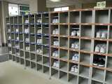 8時30分になりました。2年生前半グループ(出席番号奇数の生徒)が登校しました。奇数番号の靴箱に運動靴が入りました。