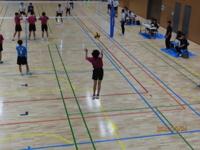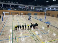 第三・長井崎戦では、レフトスパイカーが第二セット終盤に両脚をつり、ピンチとなりましたが、仲間の奮闘により、無事勝利を掴み取りました。