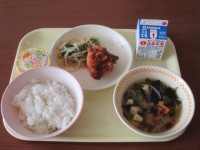 今日の給食は「米飯」「牛乳」「鶏肉とじゃが芋の揚げ煮」「豆腐とたまねぎのみそ汁」です。鶏肉とじゃが芋は、料理において非常に相性が良い組み合わせです。今日の給食もおいしくいただきましょう。