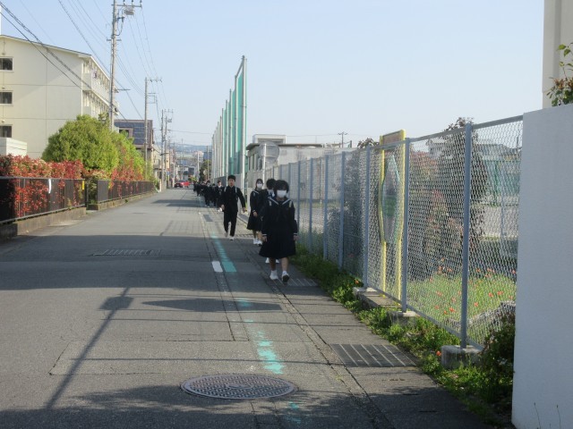 うららかな春の日差しです。ただ、日中の気温は上がりそうです。生活委員の皆さんが元気にあいさつ運動をしています。