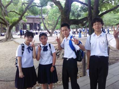 奈良公園が1日目の最後の見学場所です。これから食事に行きます。