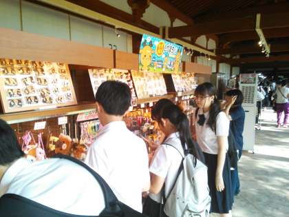 早速おみやげを見ています。G組はボランティアガイドさんに案内してもらいました。