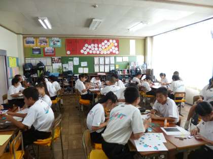 3学年ともにテストが終わり、6時間目は全校一斉に全校制作を行っています。