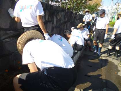 午後G組が、Flower for school Numazu様からいただいた花の苗を植えています。