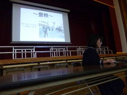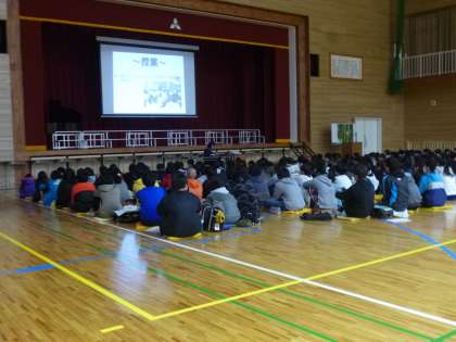 2年生学年委員会の生徒から、金中生の生活についてプレゼンテーションがありました。