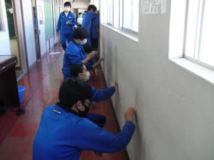 明日は卒業式です。今日は第5時から1、2年生が卒業式の準備をしています。明日、3年生が使う教室や廊下、体育館を、心を込めてきれいにしました。