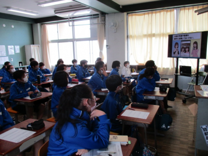 本日の5時間目に、1年生を対象とした「スマホ・ケータイ安全教室」を行いました。今回は、NTTドコモの映像資料を活用し、各教室ごとに実施しました。