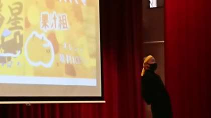 閉会セレモニーで、各ファミリーの長から、明日の体育の部への決意が語られました。今年度は、5つの縦割りファミリーを結成し、学年を超えた団結で学校を盛り上げます。