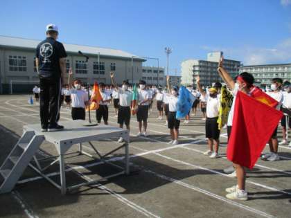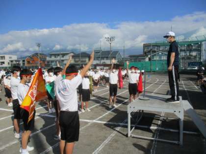 各カラー長の選手宣誓です。力強い決意の言葉が述べられました。そのあと、実行委員より競技上の注意が伝えられました。