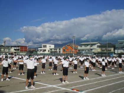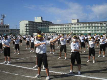 プログラム1、ラジオ体操です。早速得点種目です。