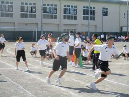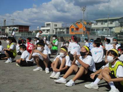 他学年の生徒は、同じファミリーのクラスを応援します。とても盛り上がりました。