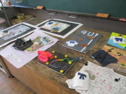 過去の先輩の作品をヒントに、コラージュの構想を練っています。