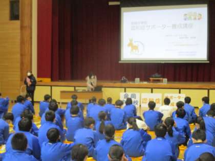 本日の午後、かなおか地域包括支援センター、沼津市社会福祉協議会、金岡民政児童委員の方々にお越しいただき、3年生を対象とした「認知症サポーター養成講座」を開催しました。