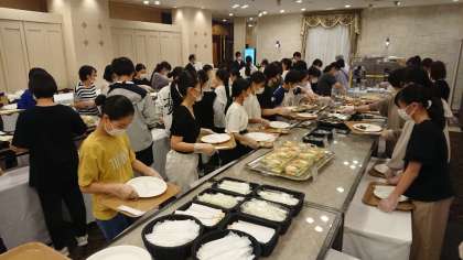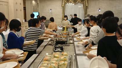 夕食が始まりました。まず女子からです。