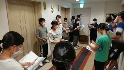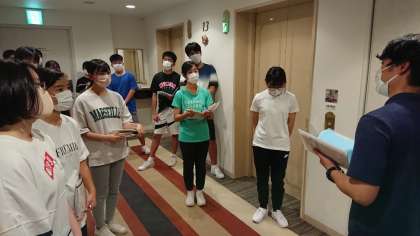 本日最後のプログラムの実行委員会です。初日の活動について、係ごとに反省をしました。リーダーの質の高さに感心します。