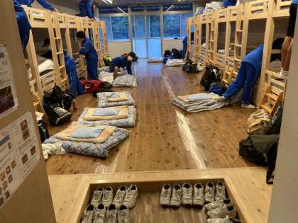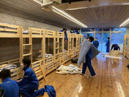 宿泊部屋に入りました。荷物や寝具等を運び入れました。