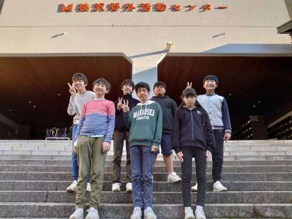 G組のメンバーで集合写真を撮りました。2日目も元気に活動しています。