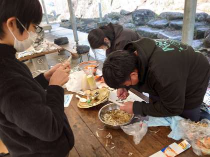 昼食も自炊します。豚汁を作っています。