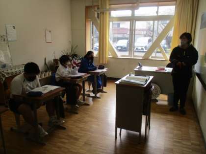 グループ別学習に取り組んでいます。新聞記事の見出しを考えています。