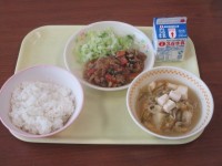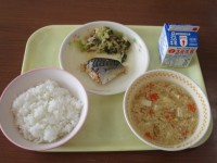 今日の給食は「米飯」「牛乳」「星型ハンバーグ照り焼き」「ごま和え」「七夕のすまし汁」です。今日は、七夕です。七夕にちなんだ、星型ハンバーグとすまし汁です。今日の給食もおいしくいただきましょう。皆さんの「願い」が叶いますように。