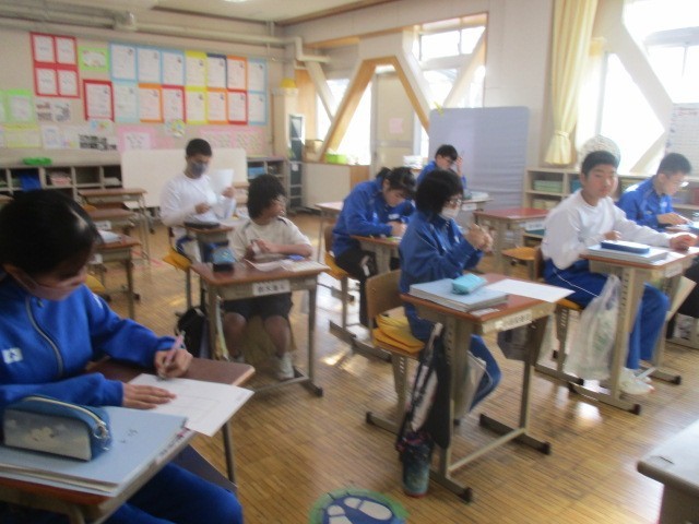 3年生は英語のパフォーマンステストをやりました。用意してきたプレゼンを示しながら、オンラインでつながったATLの方と英語でやり取りを行います。やさしい英語でも、実際に聞き取るのは「慣れ」が必要です。